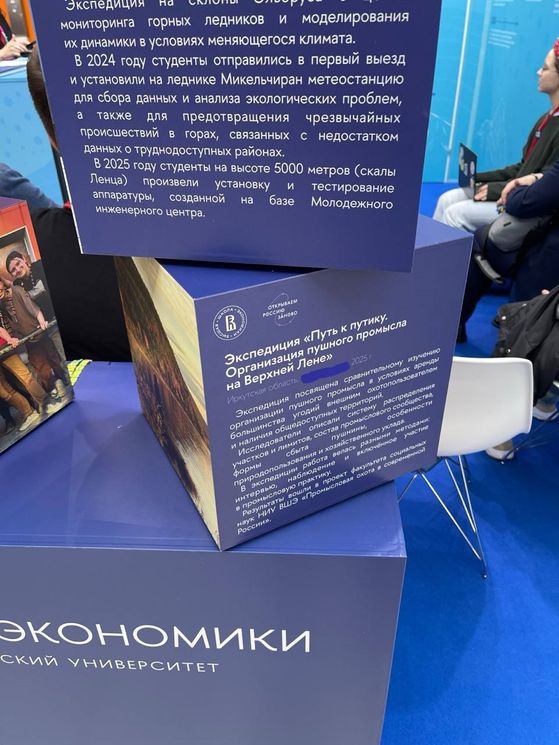 Георгий Сталинов выступил с докладами по темам исследований сотрудников лаборатории – анастасийские поселения, отходники, дальнобойщики. Кроме того, на стенде была представлена экспедиция «Путь к путику. Организация пушного промысла на Верхней Лене», организованная Артемием Позаненко.